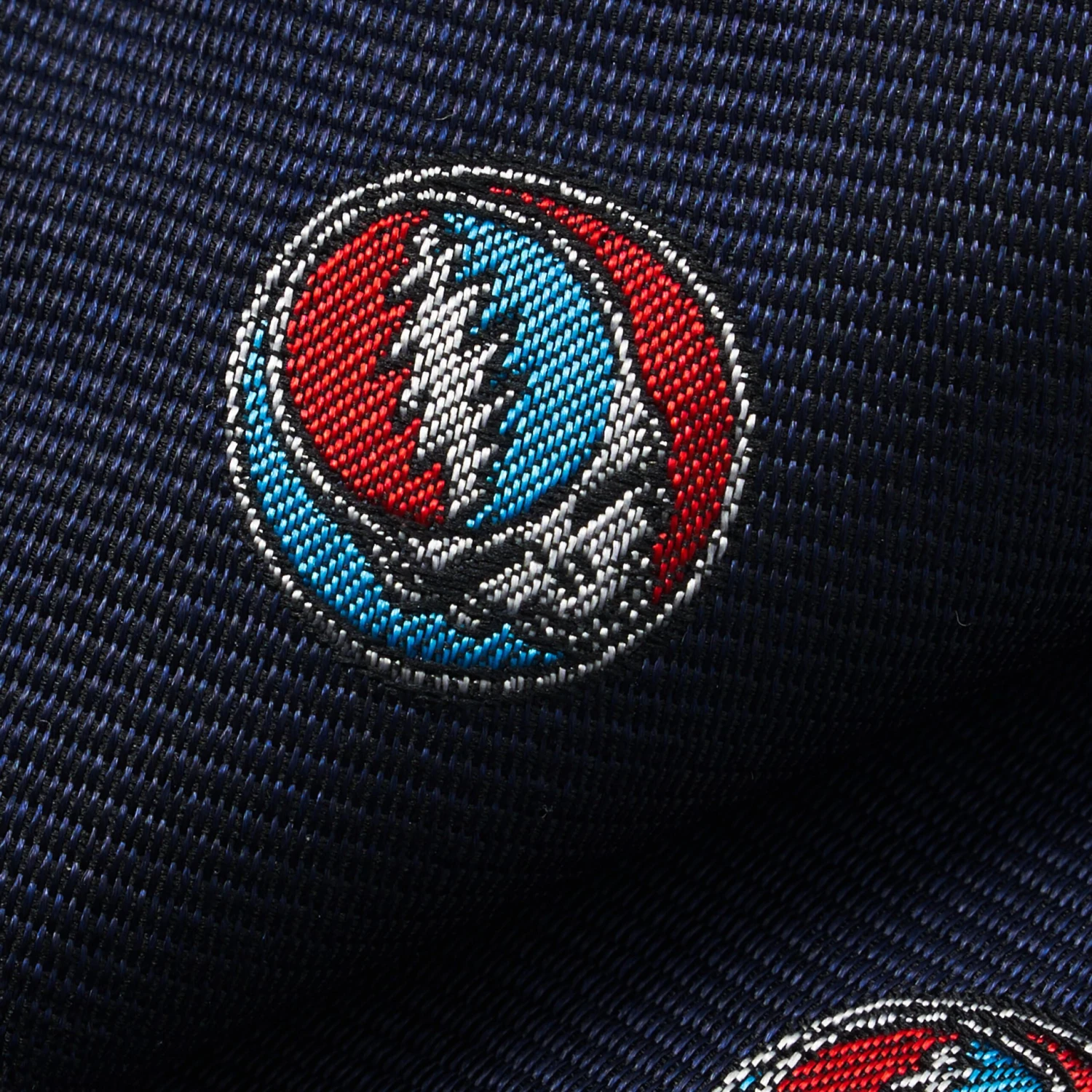 Jacquard-woven necktie featuring a repeating, all-over stealie motif.